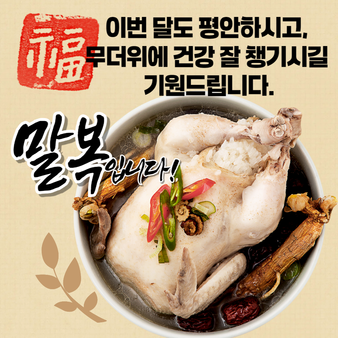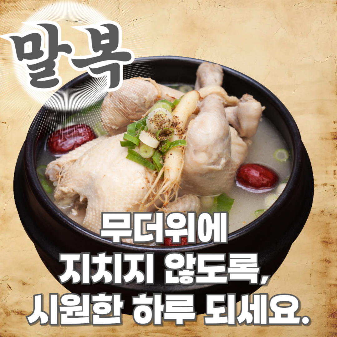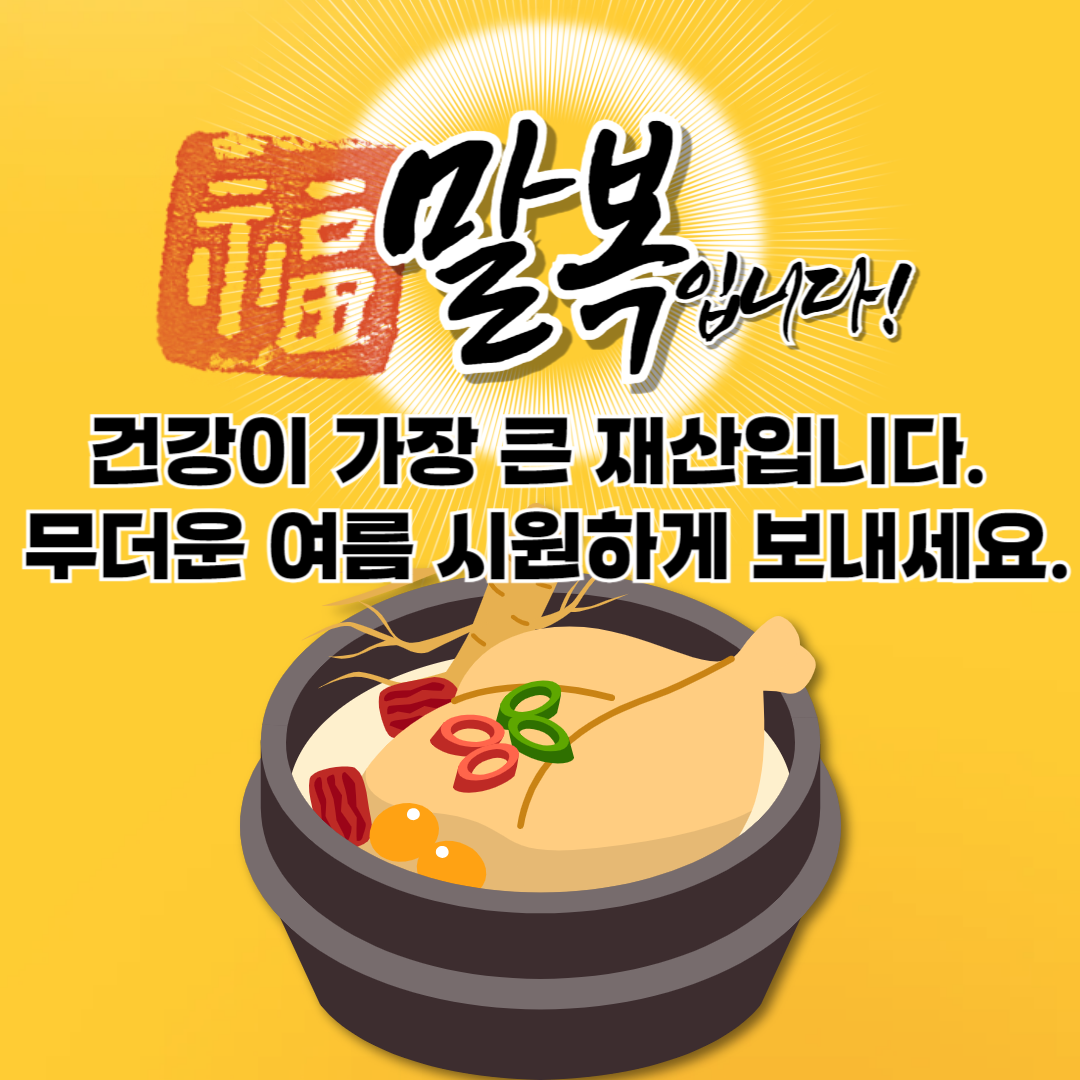 말복을 기회 삼아 가족들과 맛있는 보양식도 드시고, 잠시나마 쉼의 시간을 가지시길 바랍니다.