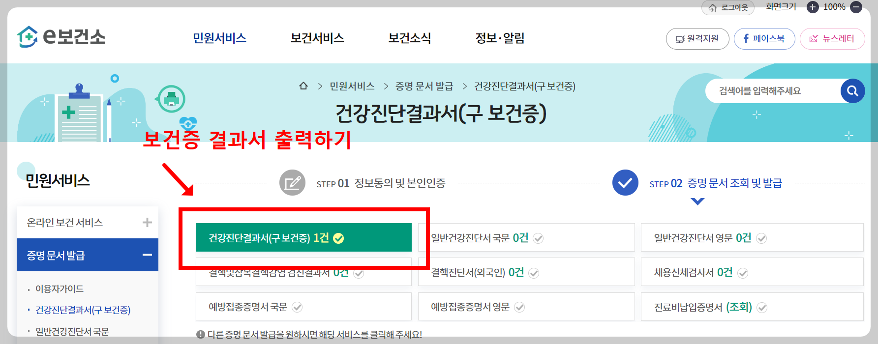 📝 정리 요약: 인터넷으로 보건증 출력 순서