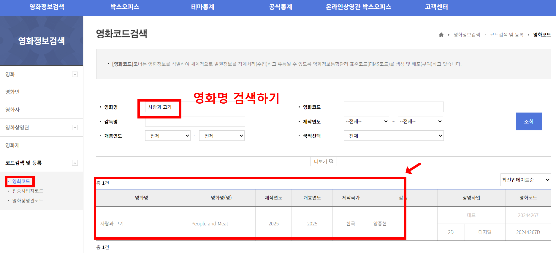 3. 영화명에 ‘사람과 고기’ 입력