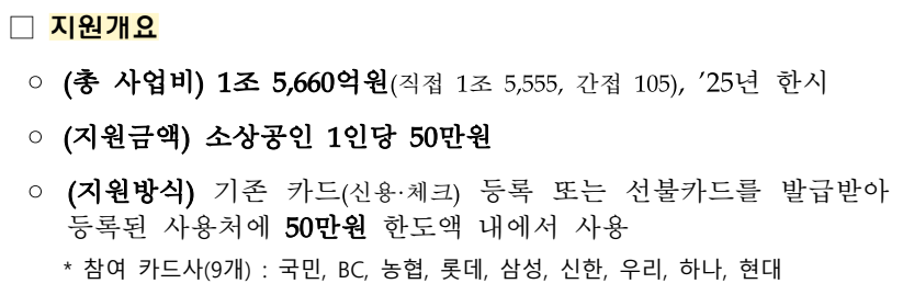 | 상생페이백 | 1조 3,700억 원 | 사용 증가분에 대해 온누리상품권 환급 |
