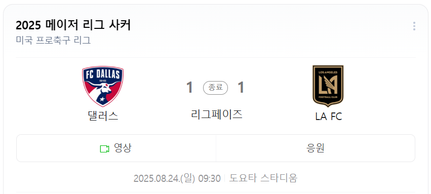 - 후반전 → LAFC의 공세 지속, 크로스바·GK 선방 등으로 추가 득점 무산