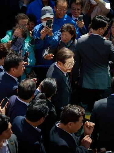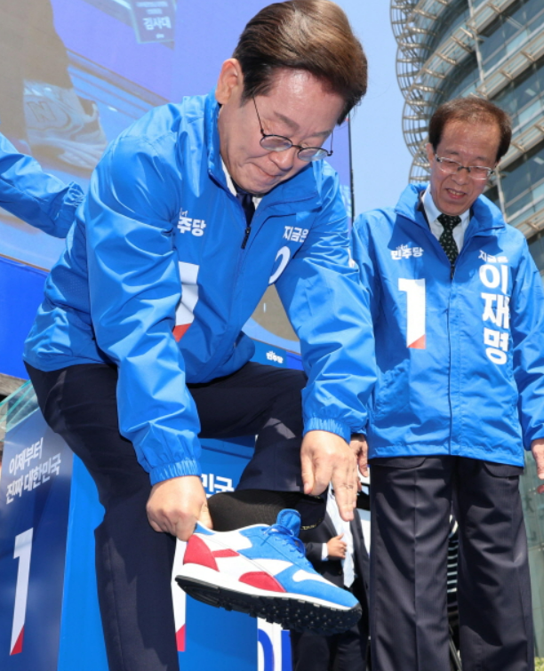 이재명 후보가 운동화를 신은 모습이 언론과 SNS에서 급속도로 확산되며 관심이 집중됨 - SNS 인증샷 붐