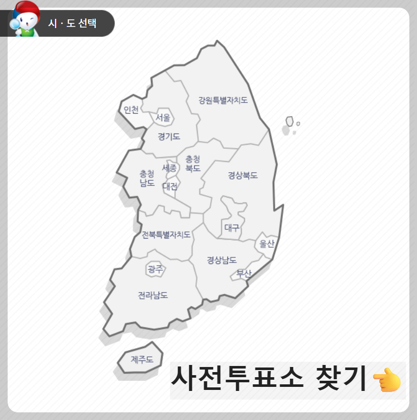 선거일, 사전투표소 위치는 내 주소지에 따라 다르기 때문에 꼭 확인해야 합니다. 홈페이지에서는 지도 기반 시·도 선택 기능을 통해 내가 속한 투표소 위치 및 운영 시간을 쉽게 찾을 수 있습니다.
