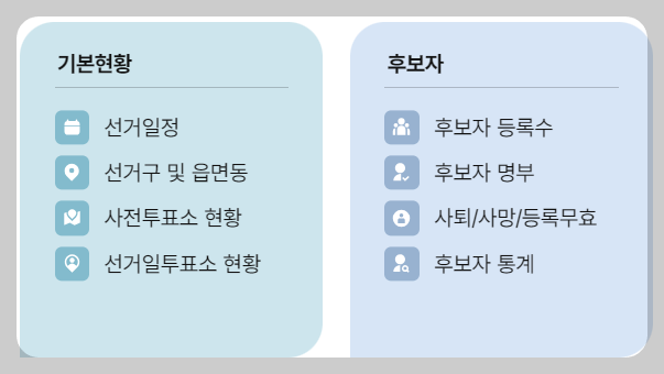 💡 [후보자 등 선거현황] 메뉴에서 확인 가능합니다. 소중한 한 표를 행사하기 전, 후보자의 정보는 꼭 직접 확인하고 판단하세요. 객관적인 데이터를 통해 내 기준에 맞는 후보를 선택하는 것, 그것이 올바른 유권자의 시작입니다.
