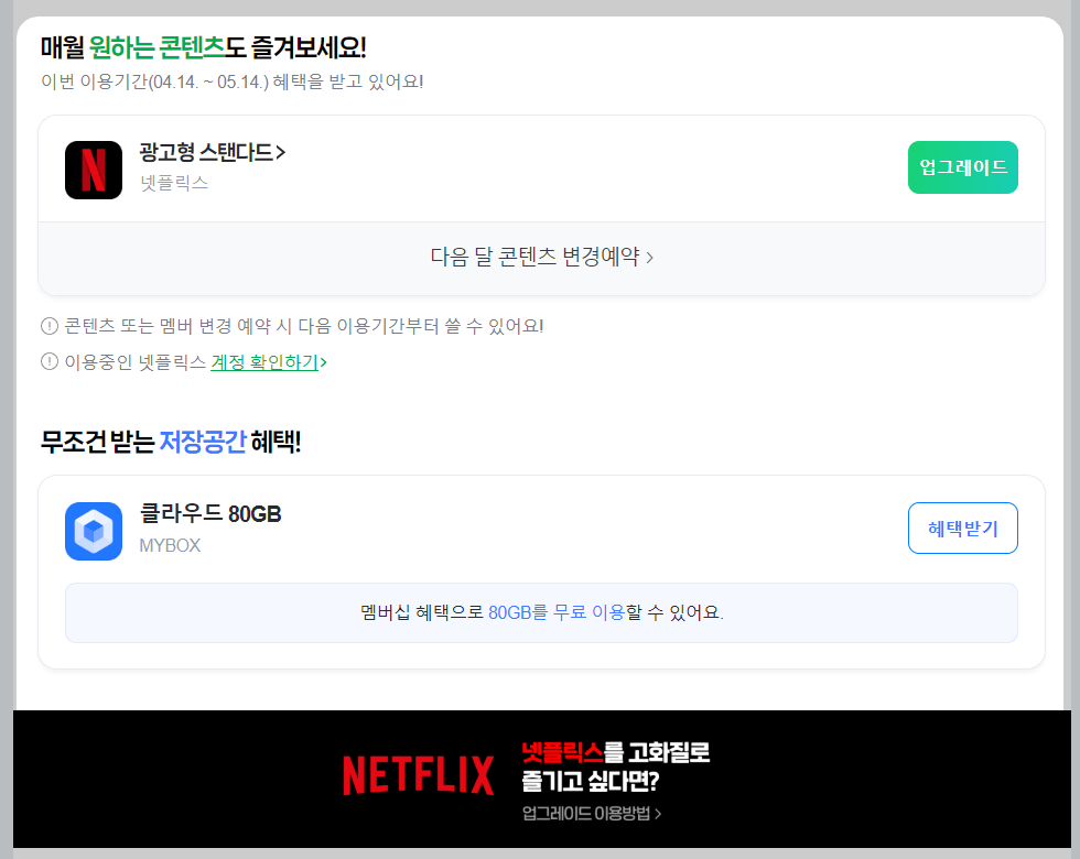 ✔️ 최근 넷플릭스는 네이버 플러스 멤버십과 제휴를 통해 할인 요금제를 제공하고 있습니다.