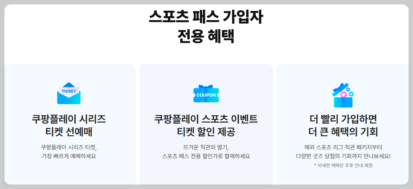 | 🏅 스포츠패스 가입 | 선예매 & 혜택 이용을 위해 꼭 필요 |