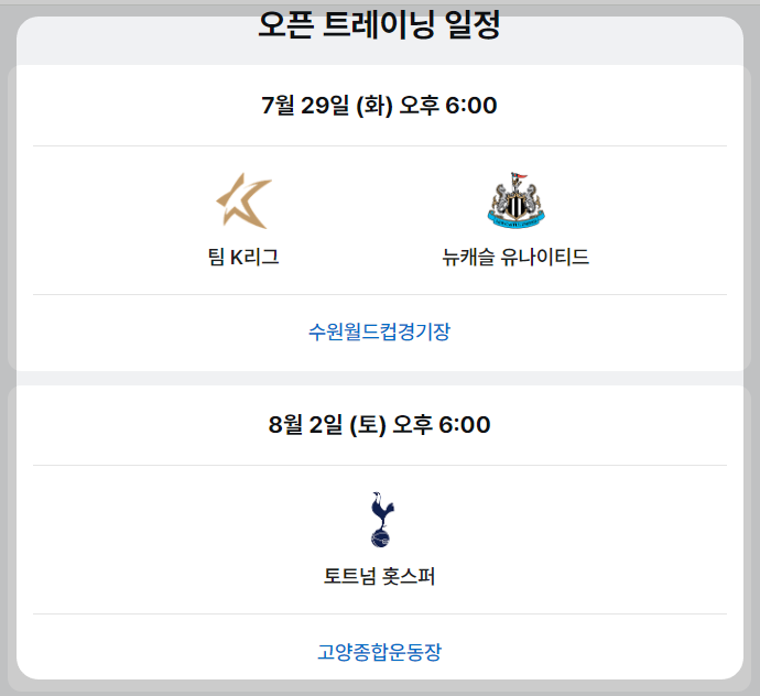 2025년 여름, 프리미어리그 우승 팀들이 한국에 옵니다! 바로 EPL 명문 토트넘 홋스퍼와 뉴캐슬 유나이티드의 맞대결이 오는 8월 3일 서울월드컵경기장에서 열리는 것인데요! 이번 경기는 단순한 친선전이 아닌 유럽 우승팀 간의 챔피언 매치로 축구 팬들 사이에서 벌써부터 티켓팅 전쟁이 예고되고 있습니다.