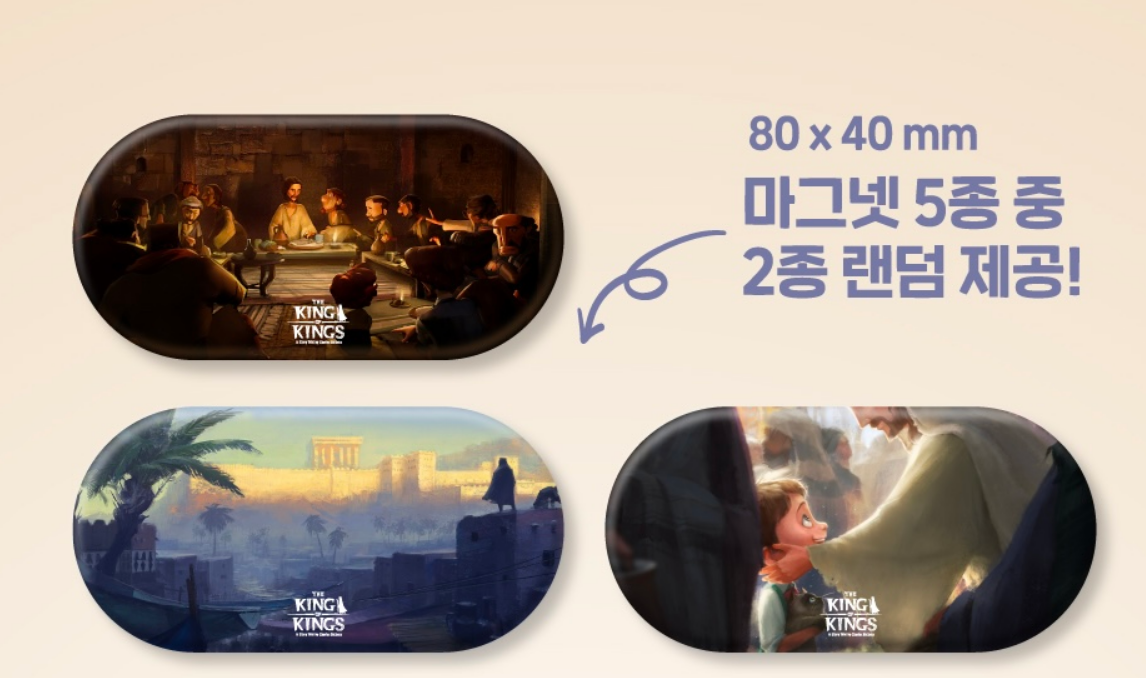 - ‘킹 오브 킹스’ 관람 인증 시 마그넷 굿즈 & 팝콘 음료 패키지 구매 가능