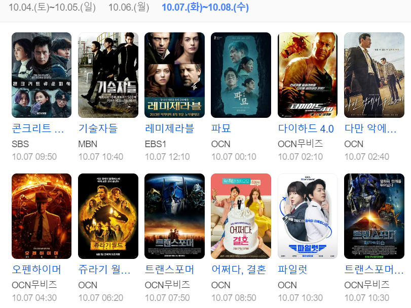 (00:10~05:00대)으로 다수 영화 연속 방송됩니다.