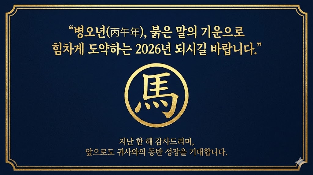 2026년 병오년, 붉은 말처럼 힘차게 도약하는 해가 되시길 기원하며,