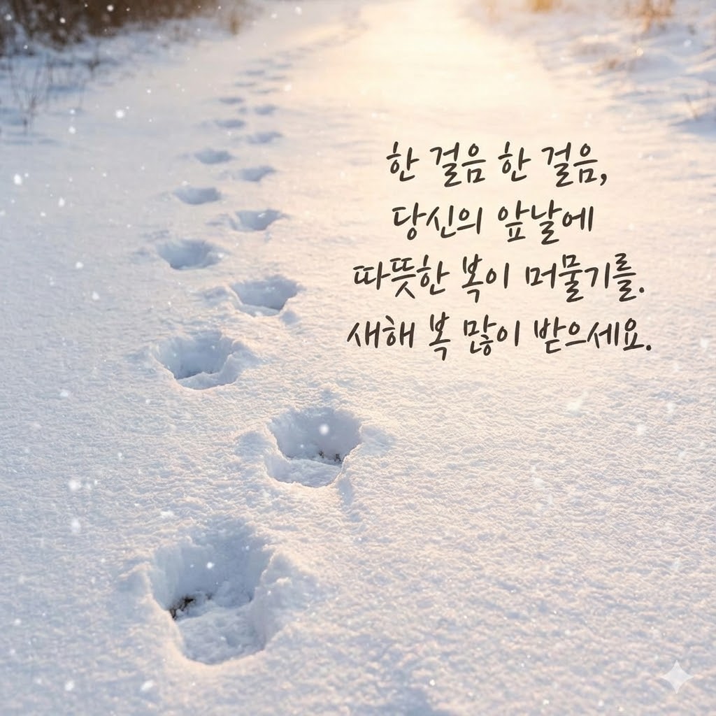 - 🌨️ 새해엔 마음에도 눈처럼 포근한 기쁨이 내리길 바랍니다.