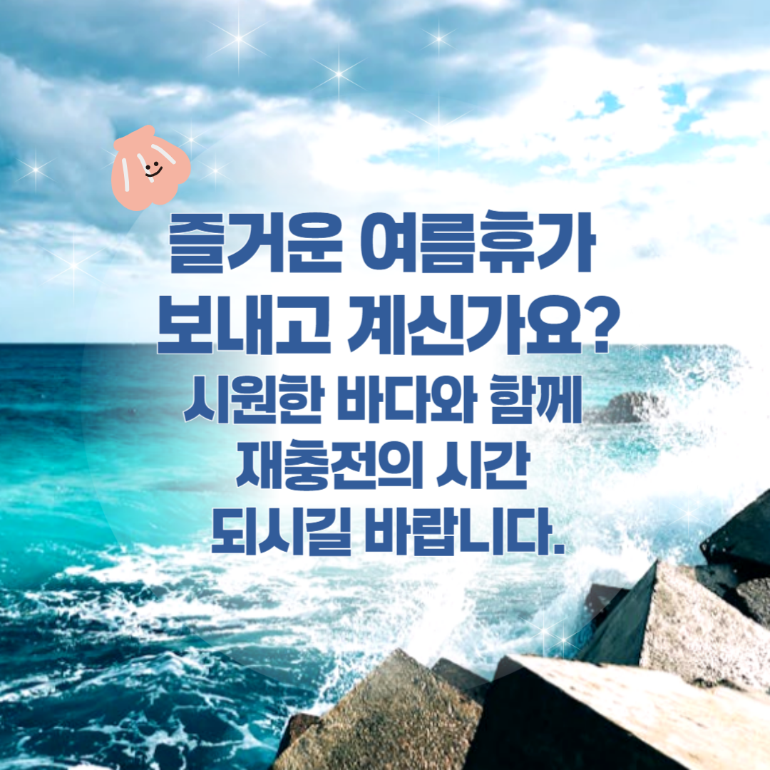시원한 바다와 함께 재충전의 시간 되시길 바랍니다 :)” - “가끔은 멈추는 것도 필요해요. 이번 여름은 충분히 쉬고 힐링하세요!”