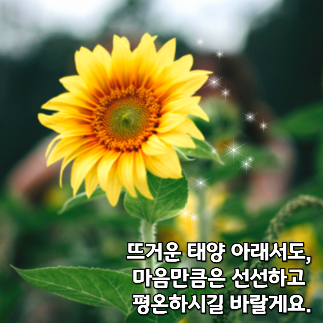 무더위가 절정에 이르는 7월 말, 이제 정말 여름이 한창입니다. 해는 유난히도 습하고 더운 날이 많아, 몸과 마음이 모두 지치기 쉬운 날씨죠. 이럴 때일수록 우리는 서로의 안부를 나누며, 따뜻