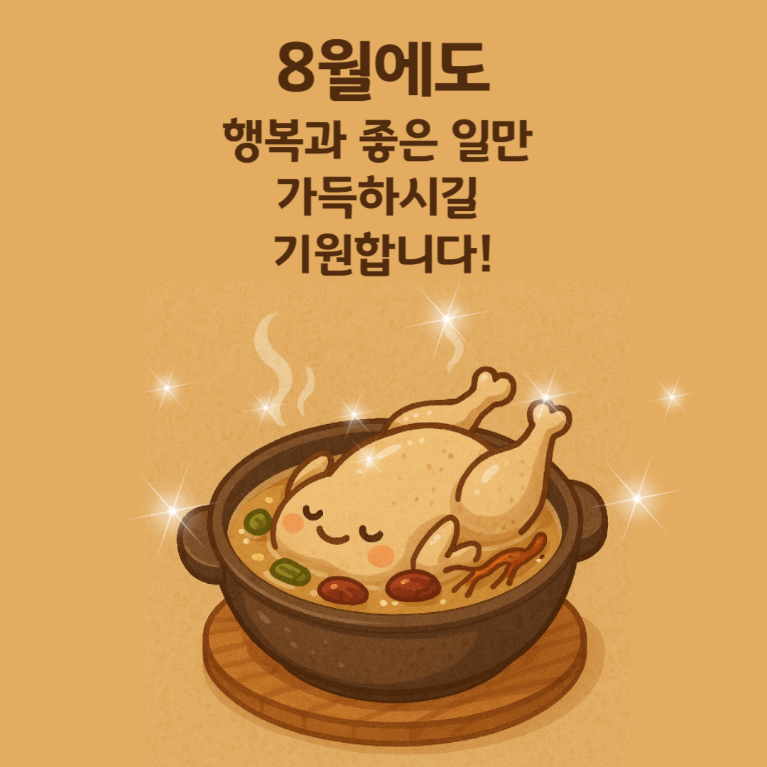 • “8월 한 달도 평안하시고, 무더위에 건강 잘 챙기시길 기원드립니다.”